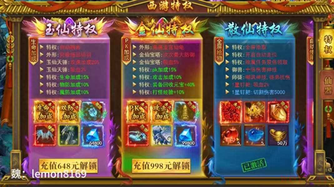 - **龙魂达标**:在线时间满足可领取白龙魂,提升龙魂等级获取吸血神器(神棒)。