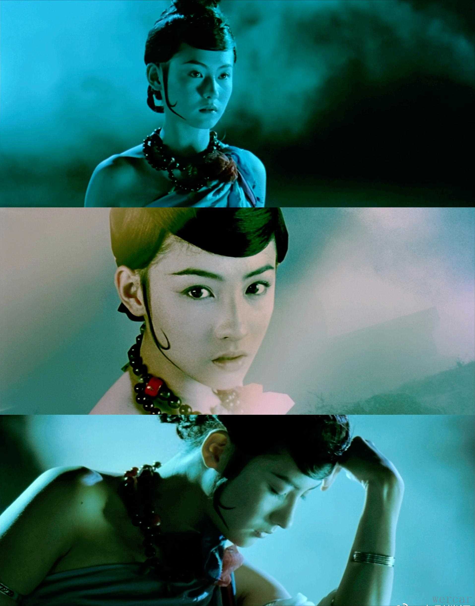 2001年的《蜀山传》里还有徐克导演自己致敬自己的场面。比如张柏芝饰演的孤月大师,造型几乎和83版林青霞饰演的瑶池堡主一模一样,都是飞天壁画的造型。