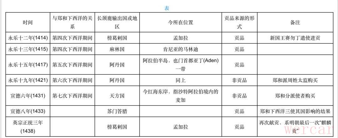郑和七下西洋及与之直接有关的海上“麒麟贡”大约前后有七次。两个阶段的划分不仅仅在于其所到达的区域,与本文有关的海上“麒麟贡”,均出现在第四至第七次,之后出现的“麒麟贡”,也与郑和下西洋有着紧密的关联。或以为第四至第七次下西洋地域上的拓展,是与“麒麟贡”直接有关。