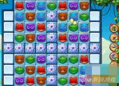 先找准好那个区域是最应该下手消除的,我的建议是先打通下来被阻碍住的横向雪花,其他方面没什么特别的难度,时间少,数量多的情况下还是多利用特效,这是一个亘古不变的老话题,要过关必先打开通口,多制造会发光的小动物。