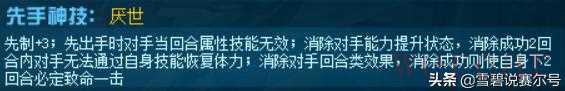 先三,封属好评,对依赖属性的精灵有着强力的杀伤力,缺点是不必中,对混布等高闪精灵无效,消强消回合被放在一起,缺点很明显,也是面对高闪精灵导致既无法消强也无法消回合,对手会更肆无忌惮。不过消强封回血,断回合打致命一击还算不错,精灵阵亡换辛上场时可以配合魂印先四断回合消强,再来先一第五或大招致命一击送走对手。