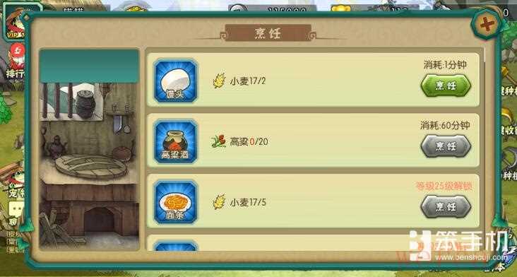 玩家19级时开启这个玩法。在爷爷那里有个灶台点击就可以选择想烹饪的食物烹饪了。烹饪也是需要时间的,大家选择要烹饪的数量等时间到了就能点击灶台收获食物了。烹饪也可以通过元宝立即完成。
