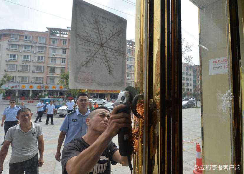 现场对KTV进行强制开锁,将门上的铁锁锯开。