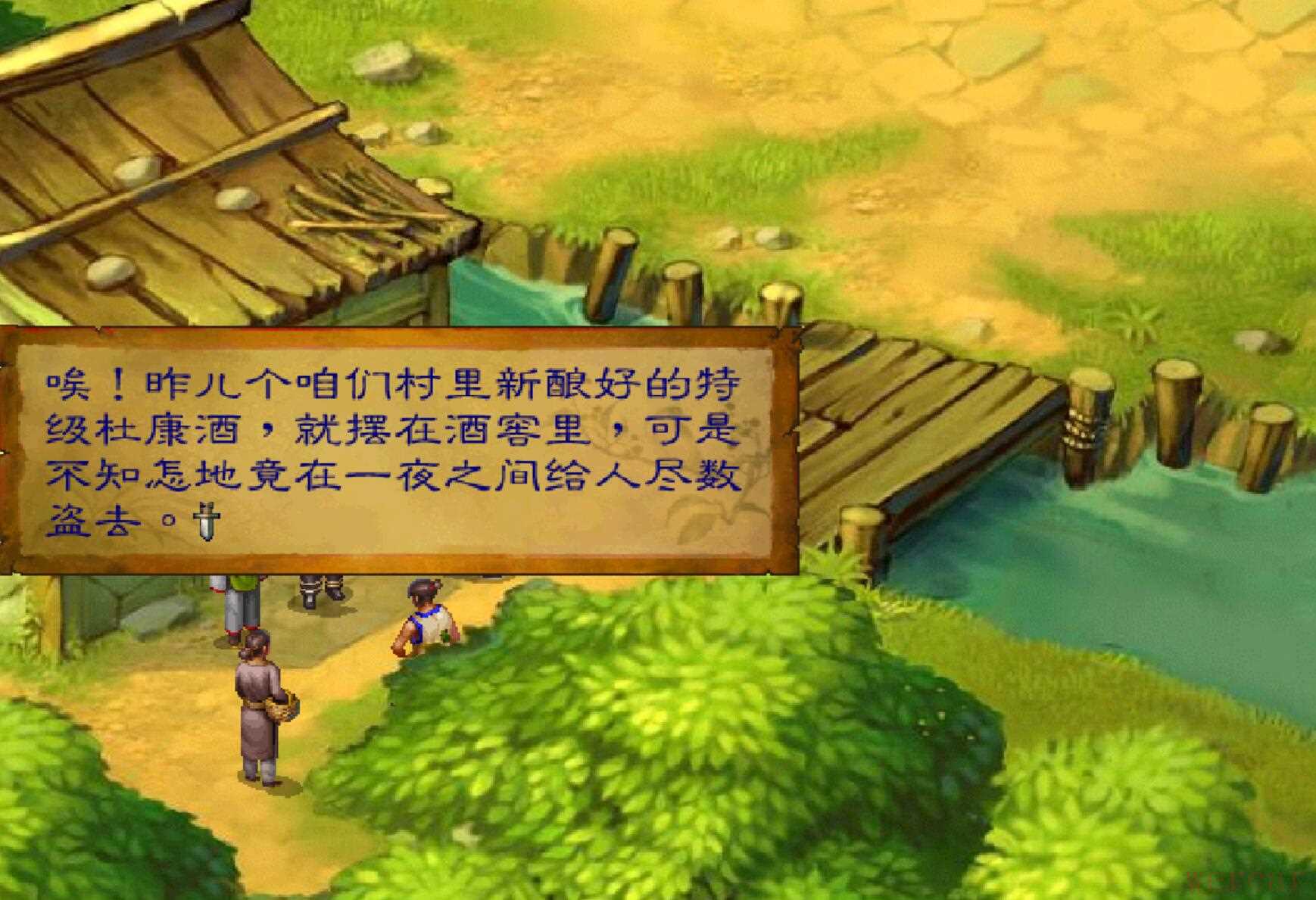 杜康村这里的事件还真不少,先是杜康酒失窃,后期大地图模式还要在这里钓怪鲶鱼。必须使用蛇胆哦!
