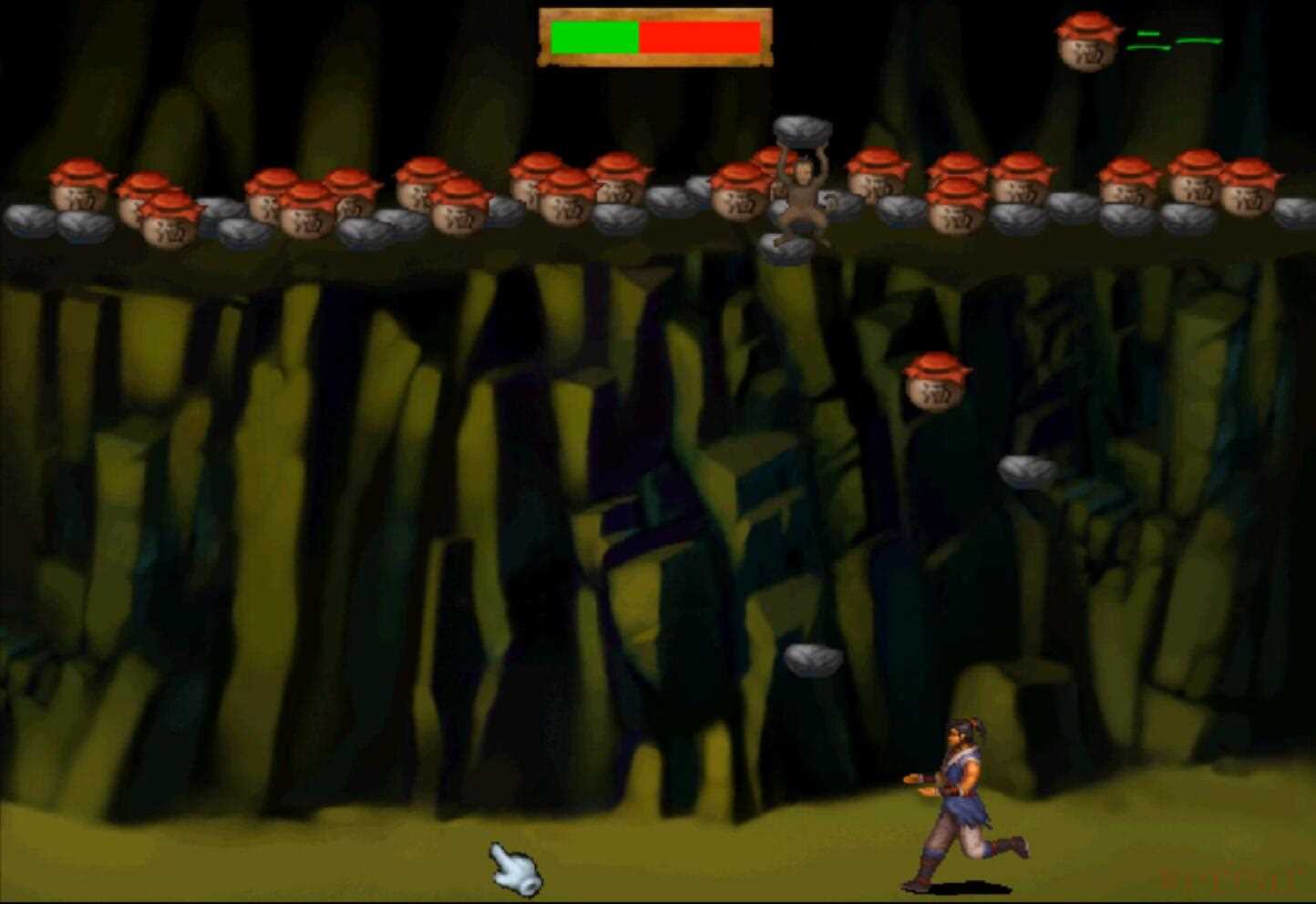 想要抓住这只猴子,就必须玩一个小游戏。类似于当年我们玩到的“母鸡下蛋”。遇到石头要避开,遇到酒坛子要接住,接住35坛之后就可以完成任务了。