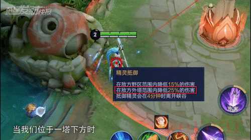 当我们位于一塔下方时,也能受到野区精灵的保护,降低了线上玩家前期被越塔的风险