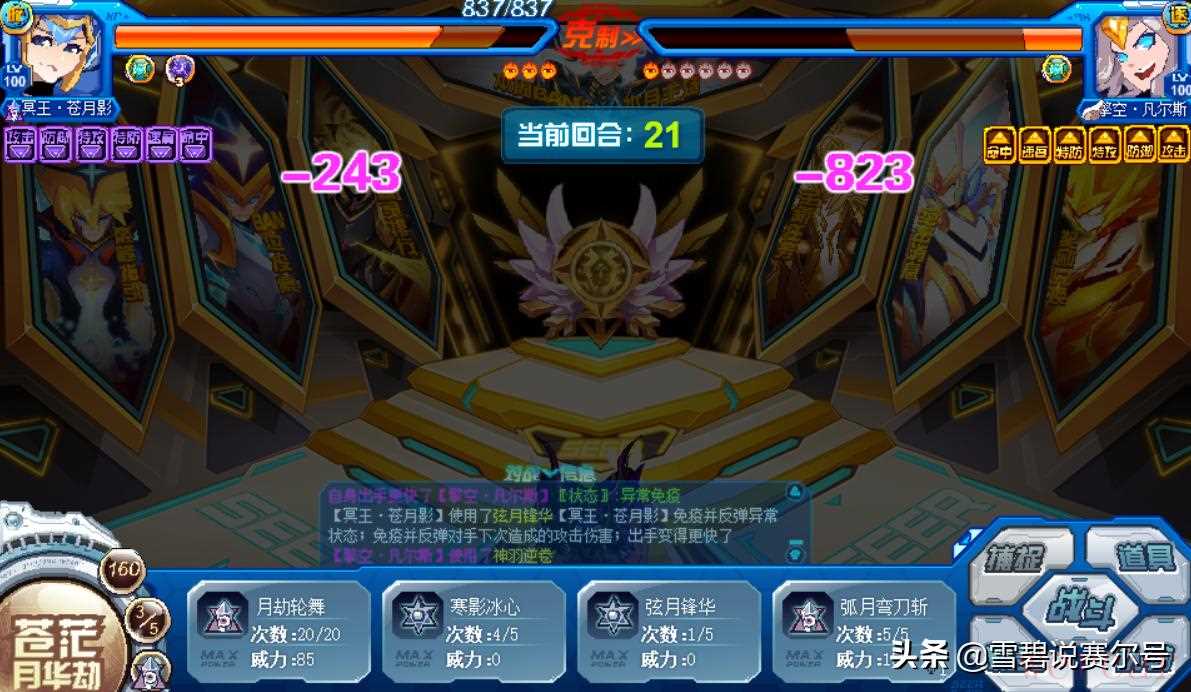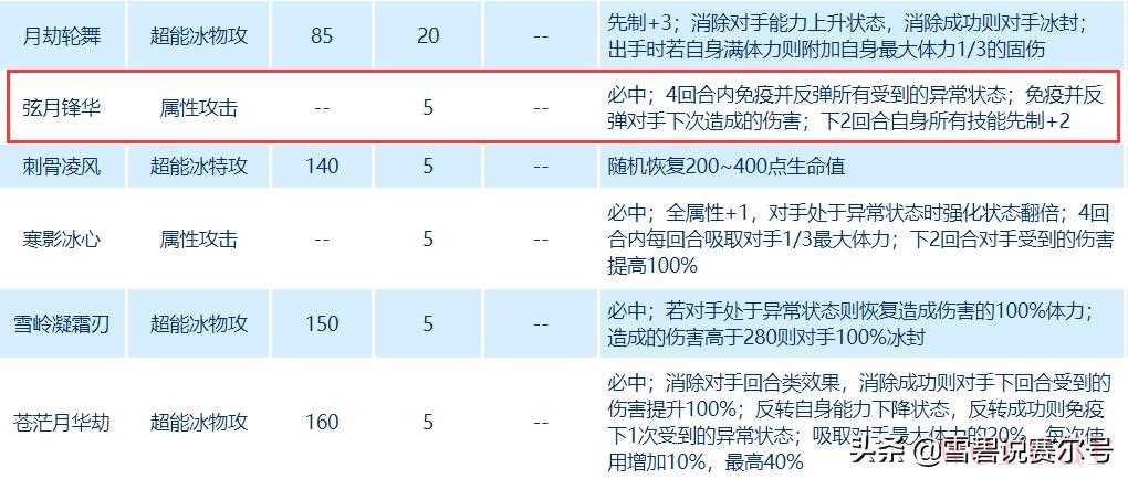 另外她的技能【弦月锋华】弹伤,也是判定的弹红伤(类似机盖那种),用的好有奇效。现在同类精灵可以看勇弟弟,只要先手开出骁虎弹伤,针对一些高额红伤精灵可以说致命性打击,比如索的平地烈火,螳螂平地红伤等等。