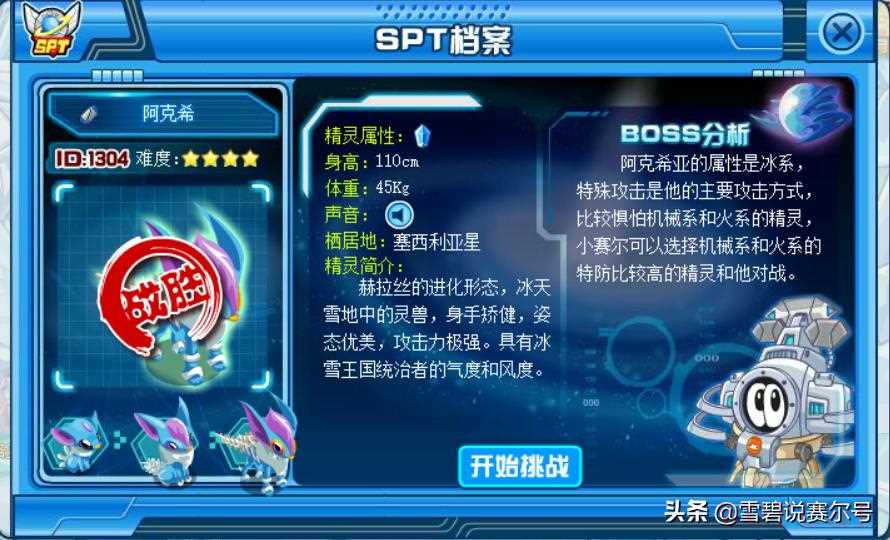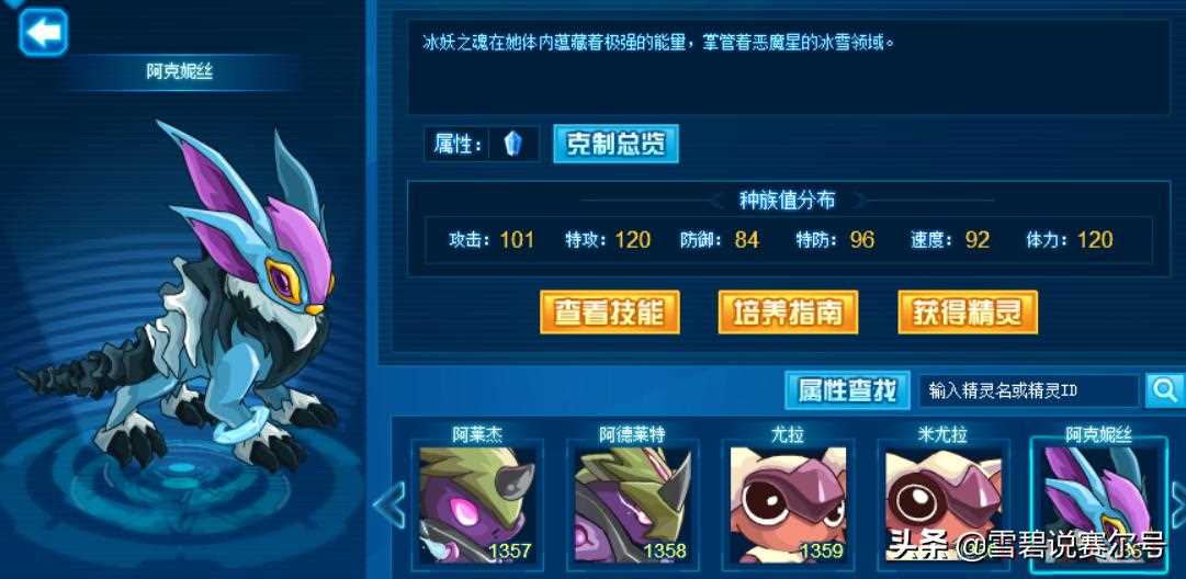 阿克希亚进阶史阿克希亚可以说是赛尔号最早期的精灵了,序号在赛尔号的50位,是09年玩家的回忆,也是赛尔号最早的冰系精灵.而阿克希亚能进阶到现在靠的也不全是童年回忆,其实也算沾了雷伊主角的光了。